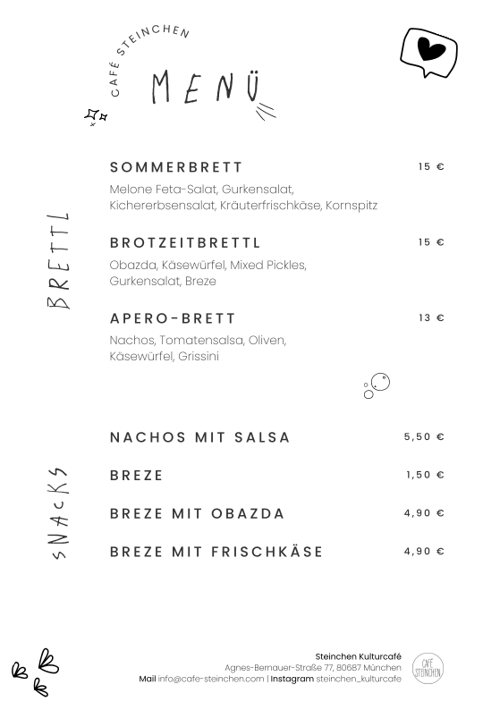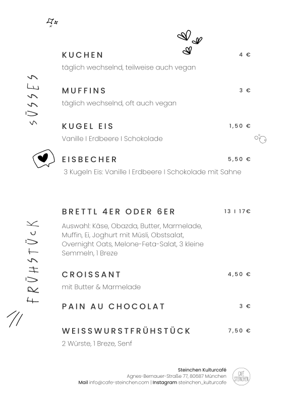 Overall, Steinchen Kulturcafe stands out as a special gathering spot that artfully blends the love for food, community, and culture. Don't just visit; make it a part of your Munich experience!